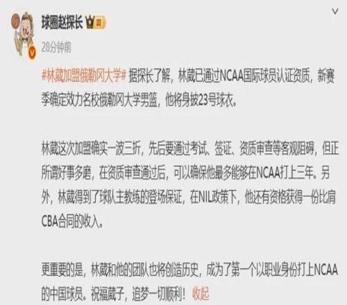 國內媒體人跟進報道稱,林葳在俄勒岡大學繼續身披23號球衣,得到了主教練的上場保證,並且在NIL政策下有資格獲得一份比肩CBA合同的收入,就此成為首位以職業球員身份打進NCAA的中國球員。