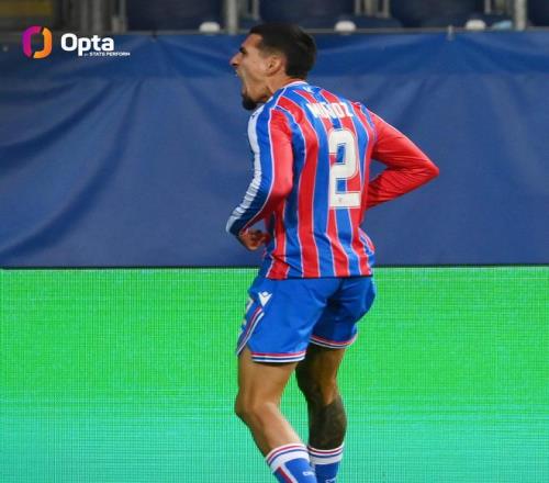 比賽第31分鍾,皮諾助穆尼奧斯頭球破門。借此,他成為了水晶宮首位歐戰正賽進球者。