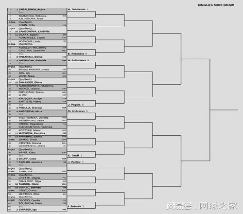 香蕉视频网址再來關注武網。北京時間昨天下午,WTA1000武網公布了正賽簽表。女單前八種子對位:上半區,薩巴倫卡一萊巴金娜、阿尼西莫娃-佩古拉;下半區,高芙-米拉-安德列娃、斯瓦泰克-鮑裏妮。中國球員方麵:張帥VS納瓦羅、朱琳VS喬恩特、王欣瑜和袁悅VS資格賽球員。