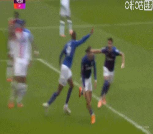 第90+2分鍾,格拉利什將對方的解圍擋入網窩,埃弗頓2-1反超比分!