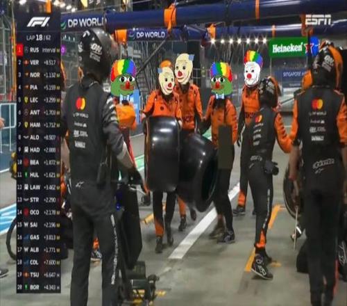 拉塞爾獲得領跑位置之後直接把維斯塔潘拉開到2.6秒以上,這就把難題拋給了維斯塔潘,在進攻無望的情況下,隻能盡可能的防住身後的兩輛麥克拉倫。而皮亞斯特裏也在隨後的TR中表達了對諾裏斯的不滿,認為隊友沒有“團隊精神”......