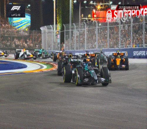 隨著五盞紅燈熄滅,2025賽季新加坡大獎賽正式開始!起步之後,拉塞爾表現出色守住第1,維斯塔潘不遑多讓穩住第2,但第5起步諾裏斯發車後的表現極其強硬!超越安東內利之後又超越自己的隊友皮亞斯特裏升至第3!