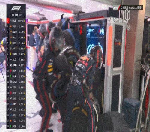 第20圈,紅牛才召喚維斯塔潘進站換上白胎,出站後他壓在了阿隆索身前排在第7名!此時他距離身前的漢密爾頓8秒左右,而上升到第2的諾裏斯距離身前的拉塞爾有10秒的差距,這給到了雙方足夠的空間將賽車推向極致。