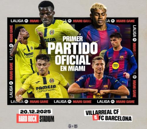 西甲官方宣布比利亞雷亞爾主場與巴薩的西甲聯賽,將會在12月20日於邁阿密舉行,預計兩支球隊將會因為這場比賽,各自收獲500-600萬歐元的收入。