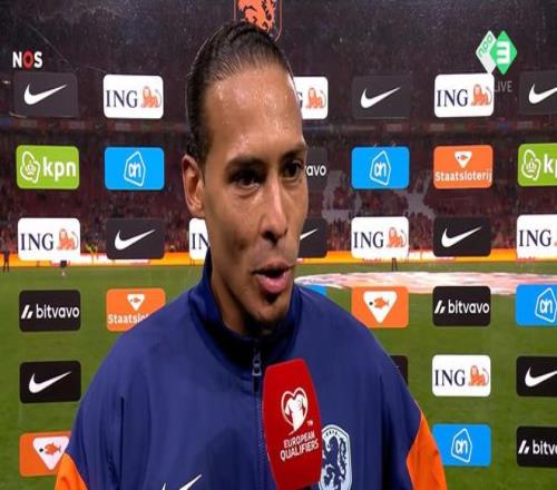 世界杯歐洲區預選賽第一階段第8輪,荷蘭主場4-0大勝芬蘭。賽後,收獲進球的隊長範戴克接受了NOS的采訪。
