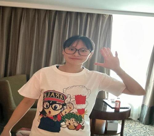 162的個子,瘦瘦小小的女生,核心也弱,每次退後場都踉踉蹌蹌的。動作也不好看,匠氣十足的左撇子,像個第一次打高端局生怕漏球被大佬噴的新手一樣,動作僵硬,球拍永遠高高舉過頭頂。