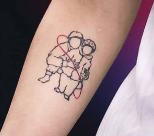 蔡侑玎小臂上的文身,便是自己年幼時與母親的合照。