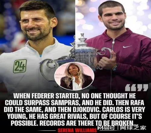 當被問及是否認為阿爾卡拉斯能夠打破德約科維奇的24個大滿貫冠軍紀錄時,小威廉姆斯表示:“在這一點上,一切皆有可能。”