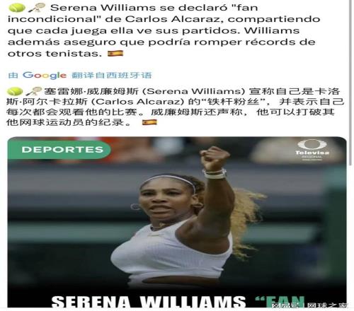 小威廉姆斯解釋道,自己對阿爾卡拉斯的讚賞源於她對西班牙網球的長期關注。