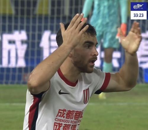 此後費利佩接到羅慕洛的角球傳中頭球破門,蓉城追至1-2。傷停補時階段,來到第100分鍾,費利佩在亂戰中為蓉城完成絕平,雙方戰成2-2!這場比賽的結果也意味著在本輪結束後,海港仍然是中超領跑者。