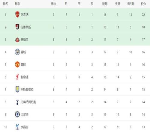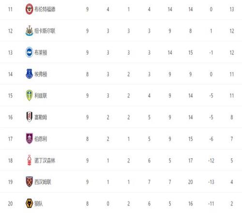 最新積分榜如下:
