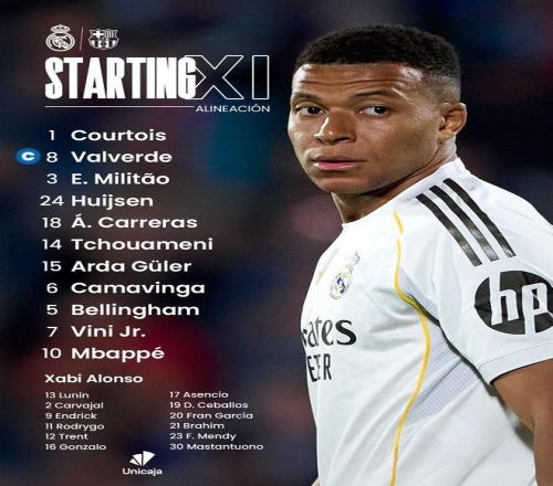 北京時間今晚23:15,皇馬將迎來西甲第10輪主場對陣巴薩的比賽,目前雙方的首發陣容已經公布。