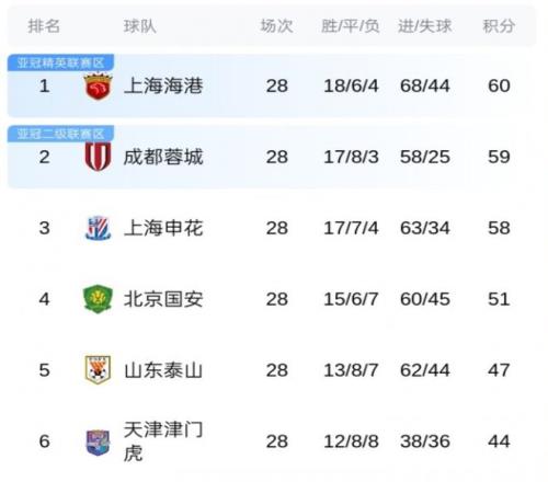 北京時間10月26日晚,中超第28輪比賽結束3場爭冠焦點戰!主場作戰的上海申花隊2-2絕平大連英博!成都蓉城隊則客場2-2絕平青島西海岸隊;領頭羊海港隊1-3慘敗山東泰山隊;北京國安隊主場2-4被青島海牛隊絕殺!這4場焦點戰結束,中超積分榜的爭冠形勢繼續白熱化:前三名僅相差2分!最後2輪比賽,3隊繼續角逐最終的冠軍。