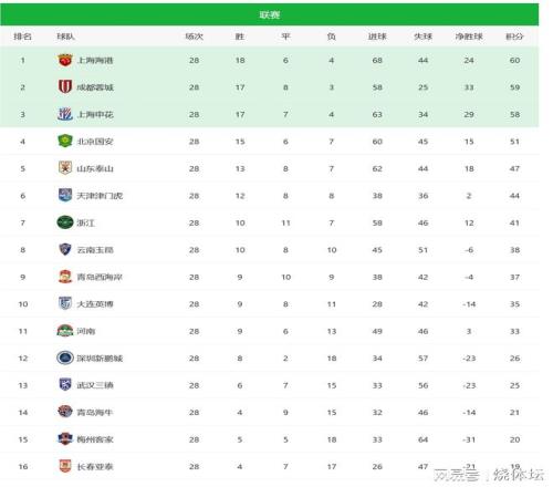 第28輪比賽戰罷,三支爭冠球隊全都不勝,積分榜排名沒有發生變化。至此,爭冠主動權依然握在上海海港的手裏,接下來海港將對陣浙江隊、大連英博,兩場都拿下即可確保奪冠。