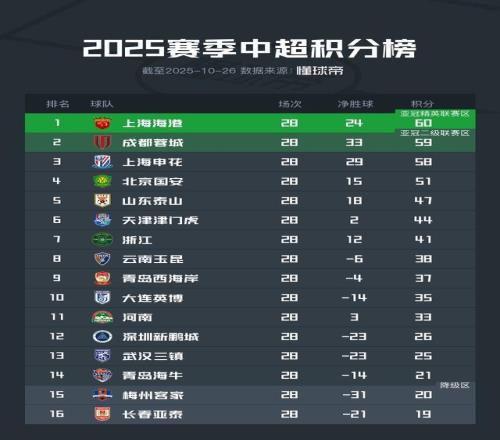 第28輪中,新鵬城力克三鎮,梅州1-4不敵雲南,亞泰在2-0領先的情況下遺憾被津門虎追平,而青島海牛客場上演大逆轉,4-2戰勝北京國安。