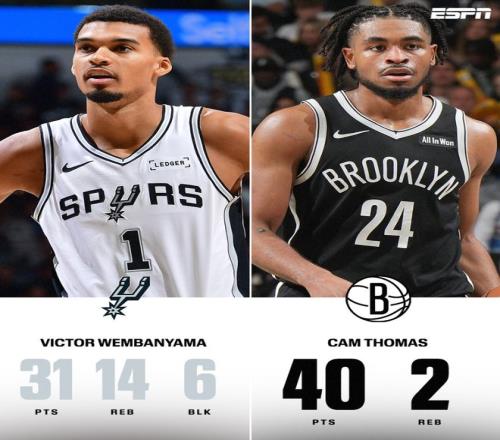 籃網對馬刺,托馬斯40分難敵文班“火鍋宴”