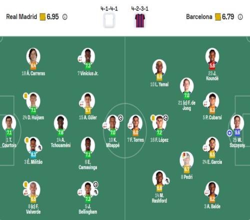 從以上數據可以看出,全場得分最高的球員不是皇馬的10號姆巴佩,而是巴薩的25號什琴斯尼,獲評9.3分。值得一提的是,西甲官方將全場最佳球員,頒給了姆巴佩。