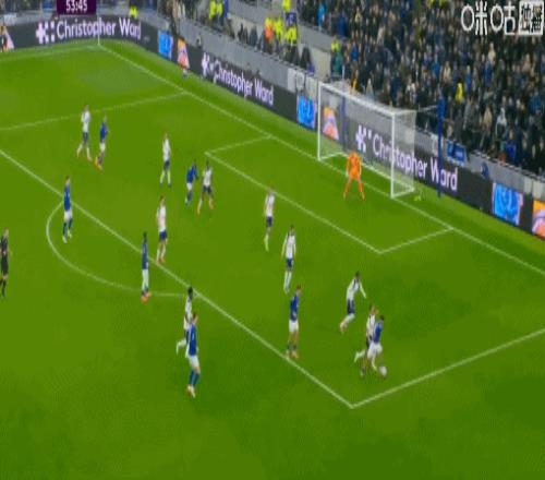 第89分鍾,裏沙利鬆頭球擺渡,薩爾頭球接力破門,熱刺3-0埃弗頓