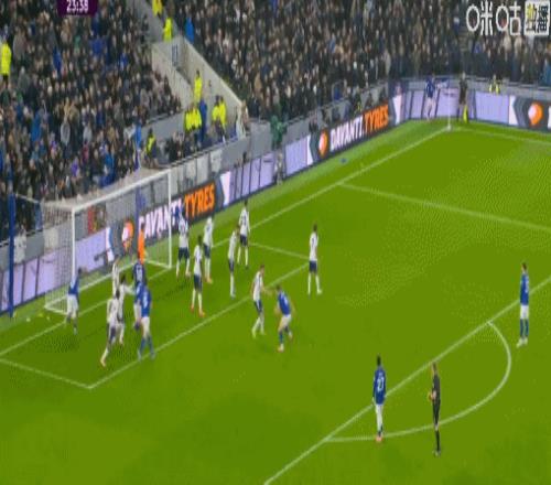 第45+6分鍾,波羅開出角球,範德芬頭球雙響,熱刺2-0埃弗頓