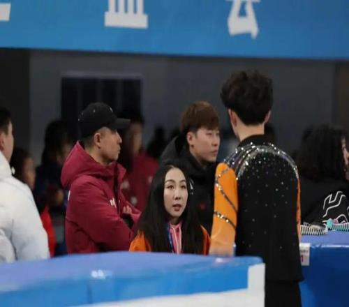 隋文靜以輔助教練身份在花滑比賽現場(圖源:新京報)