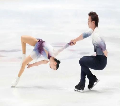 自由滑賽場,他們選擇中國風曲目《隻此青綠》,將古典舞韻與花滑技巧完美融合,完成了撚轉三周、後內結環三周拋跳等高質量技術動作,盡管後半程托舉因體能受限出現小波折,但憑借多年默契順利完成整套節目,斬獲130.47分。