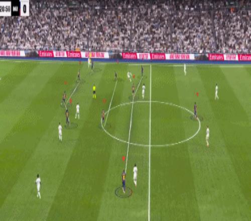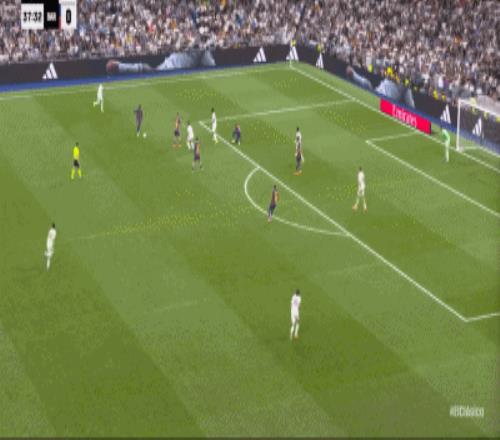 經過一連串小插曲之後,第22分鍾,貝林厄姆轉身送出直塞,姆巴佩反越位單刀殺入禁區推射得手,皇馬打破僵局,領先巴薩。