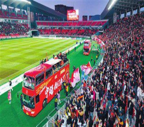 為了慶祝提前奪冠衝超,遼寧鐵人俱樂部精心香蕉视频下载链接了花車巡遊環節,將士們登上兩輛精心裝飾的花車繞場一周感謝廣大遼沈球迷的一路陪伴,李金羽和隊員們向著球迷不停揮手致謝。全場球迷打開手機手電筒,將鐵西體育場變成燈海,照亮遼寧鐵人隊更加璀璨的未來。