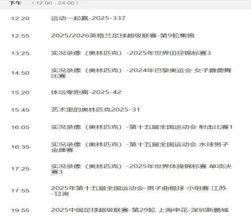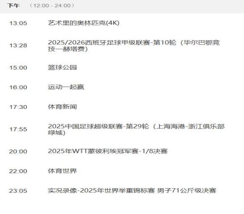 央視每周節目單顯示,央視體育頻道(CCTV5)將從10月31日17:55開始,聚焦直播上海海港與浙江隊的較量。這場比賽結束後,奧林匹克頻道(CCTV16)則將從19:55開始,繼續關注直播上海申花主場與深圳新鵬城的比賽。