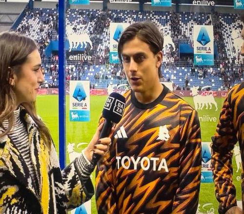 雷速體育10月27日宣 北京時間10月26日22:00,意甲第8輪,羅馬客場1-0戰勝薩索洛,本場比賽結束之後,為羅馬打進製勝球的迪巴拉獲得全場最佳球員並接受了DAZN的采訪。