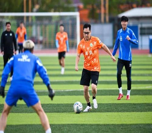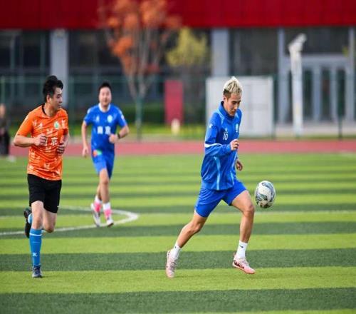 接下來的友誼賽將活動氣氛推向高潮,蘇超球員與媒體人混編,組成藍橙兩隊同場競技。