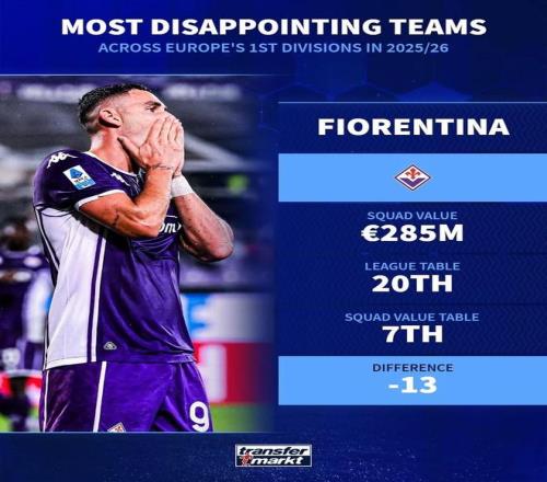 北京時間11月7日,德轉盤點了本賽季至今歐洲主流聯賽中發揮最令人失望的8支球隊,佛羅倫薩、諾丁漢森林、紐卡斯爾聯以及畢爾巴鄂競技上榜。