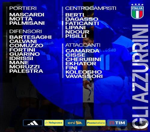意大利U21名單公布,巴特薩基、皮西利、卡馬達、科萊奧肖在列,本月意大利U21將在U21歐洲杯預選賽對陣波蘭U21、黑山U21。