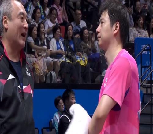 第四局一上來,樊振東連得3分。周雨叫了暫停,在暫停的時候,周雨跟教練表示:“真不好打。”教練安慰他要狠一點,放開了打,輸了就輸了。周雨最後嘟囔了一句:“想贏一局。”央視解說員高菡笑著表示:“可能周雨賽前給自己定下的目標是贏一局。現在他要狠一點,多一點搏殺。”