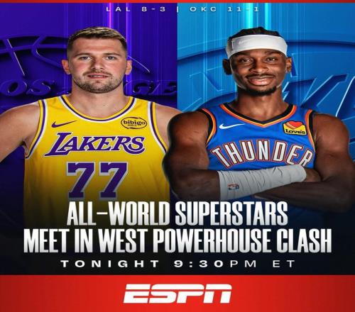 北京時間今日10:30,NBA常規賽迎來焦點對決,目前11勝1負排名全聯盟第一的雷霆隊在主場迎戰8勝3負的湖人隊。