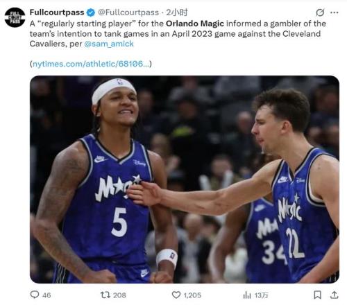 魔術隊同樣卷入這場風暴。報道披露2023年4月7日魔術對陣騎士前,一位已離隊的“常規首發球員”向賭徒透露球隊將擺爛的計劃。那場94-118的慘敗如今看來疑點重重,雖然未公布具體姓名,但當時魔術的首發陣容中,富爾茨和加裏-哈裏斯如今都已離隊。