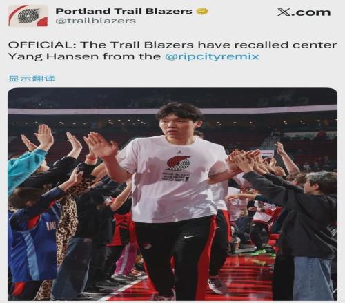 還有一個不知好消息還是壞消息,開拓者官方宣布召回楊瀚森。