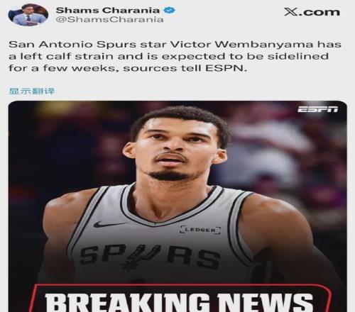 據爆料王Shams報道,文班亞馬遭遇左小腿拉傷,預計將缺席數周時間。