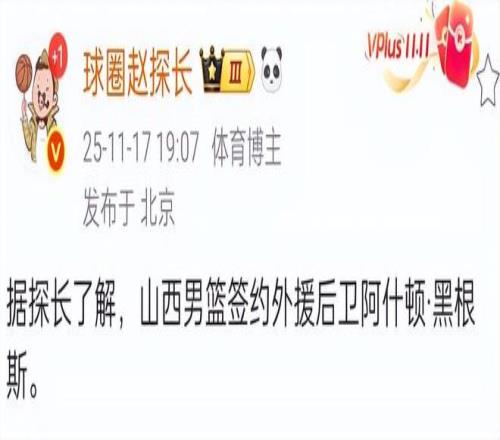 看來山西隊簽來能力平平的黑根斯有兩個原因,一是俱樂部財力不足,沒錢買好貨。一是已放棄了衝擊總冠軍的目標,折騰了一個賽季再也沒有心氣了。上賽季山西隊成績略有提升,就挑釁對手,嘲笑對手,球迷更是喊口號,掛橫額辱罵對手,遭到聯盟多次重罰。但不知新賽季有沒有人嘲笑他們,我估計他們成績再差也沒有人嘲笑和辱罵他們,因為其他球隊和球迷很文明.......你們說呢?