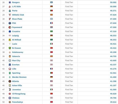 多特蒙德西格納伊杜納公園球場以場均81365名觀眾領跑,拜仁慕尼黑主場安聯球場以場均75000名觀眾位居第二,曼聯老特拉福德以場均73969名觀眾位列第三,皇家馬德裏主場伯納烏以場均73782名觀眾排名第四,大連英博梭魚灣球場以場均57978名觀眾位列第18。