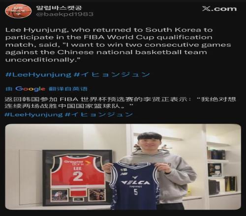 韓國男籃當家球星李賢重接受采訪談及接下來與中國男籃的世預賽大戰,表示肯定想要兩戰全部取勝。今年亞洲杯八強賽,中國男籃79-71擊敗韓國男籃,此役李賢重出手15次中6球,其中三分11中2,罰球9中8空砍22分外加7板4助,賽後痛哭流涕。