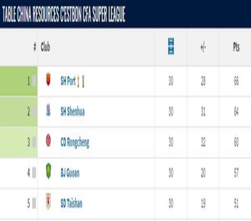 最終,上海海港、上海申花分別戰勝大連英博、天津津門虎,上海海港以66分完成中超三連冠,而上海申花連續2個賽季屈居亞軍。