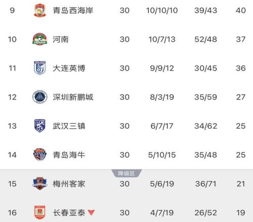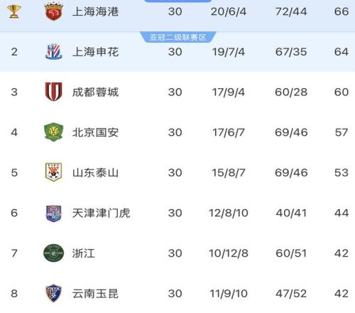 北京時間11月22日,中超聯賽第30輪,即本賽季最後一輪比賽開打。在本輪比賽之前,還有3個懸念等待揭曉,冠軍隊將在上海雙雄中產生,海牛、梅州爭奪1個保級資格,中超最佳射手也沒有確定。現在,隨著海港1-0大連,泰山+國安皆5-1,蓉城1-1,中超收官積分榜出爐。