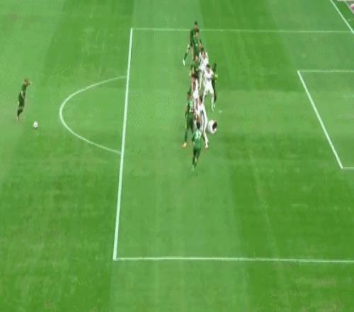 第18分鍾,法比奧小禁區魚躍衝頂,球擊中遠端門柱之後反彈入網,1比0!