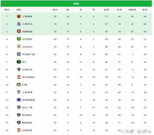 中超聯賽積分榜