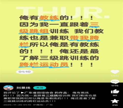 訓練資源什麽的咱們幫不上忙,但幫一位努力且優秀的運動員爭取一些注意力資源,我還是能略盡綿薄之力。至少,我要幫劉景揚說一句公道話: