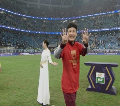 不過隨後的頒獎儀式上,武磊平複了心情,領取中超冠軍獎牌時,他還開心對著鏡頭比出了“4”的手勢,代表海港4次奪得中超冠軍。