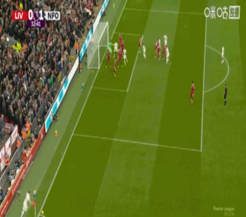 第33分鍾,森林開出角球,穆裏略抽射破門!利物浦0-1落後!