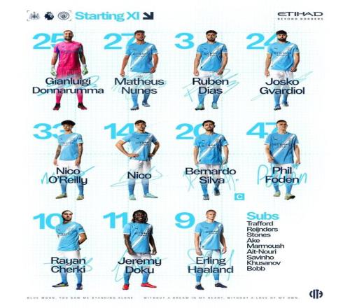 曼城客戰紐卡:哈蘭德PK沃爾特馬德謝爾基、福登、多庫首發_24直播網
