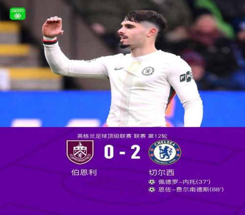 北京時間11月22日20:30,英超第12輪展開爭奪,切爾西作客特夫摩爾球場挑戰伯恩利,本場主裁判為彼得-班克斯。上半場,吉滕斯助攻內托俯身頭槌破門。下半場,吉烏助攻恩佐破門鎖定勝局。最終,切爾西2-0客勝伯恩利。