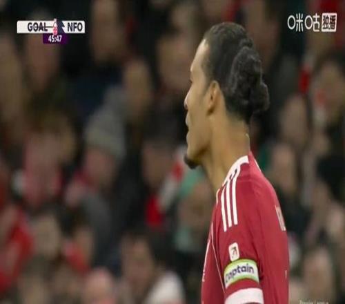 令人大跌眼鏡的是,比賽中率先發難的,竟然是客場作戰的諾丁漢森林。上半場進行到第32分鍾,諾丁漢森林前場左側開出角球,範戴克頭球解圍沒頂遠,穆裏略後點轉身抽射破門,諾丁漢客場取得領先。